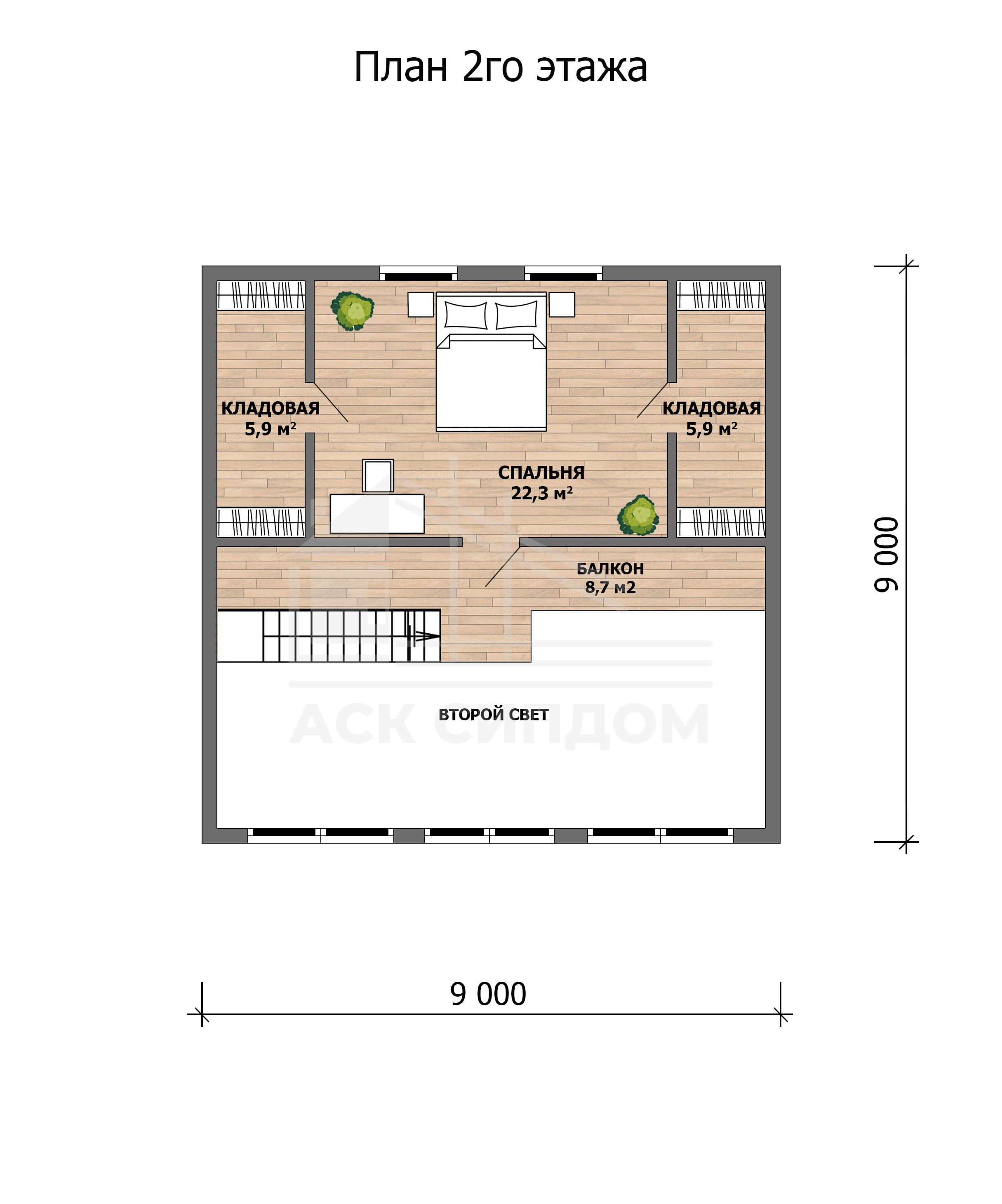- две кладовые — по 5,9 м2