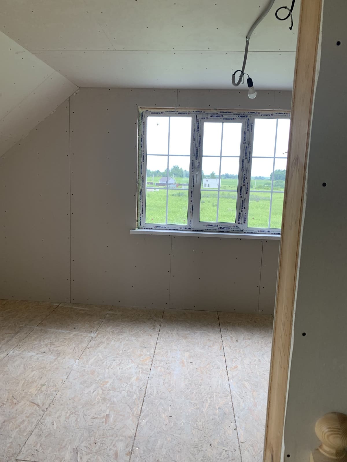 Просторный дом с большой кухней-гостиной и четырьмя спальнями. Второй этаж мансардный.