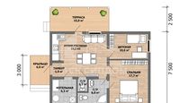 Полезная площадь дома — 67 м2, площадь террасы — 15 м. Высота потолков - 2,8 м.