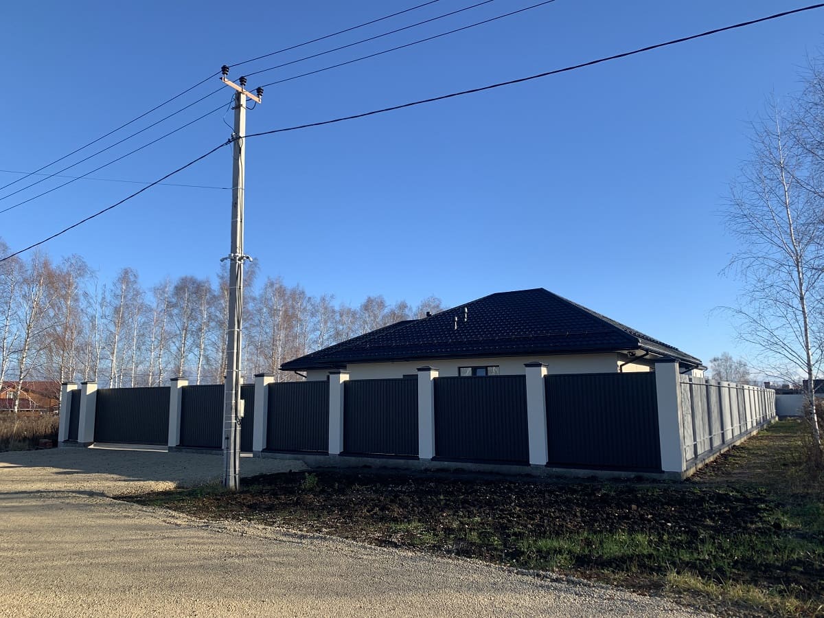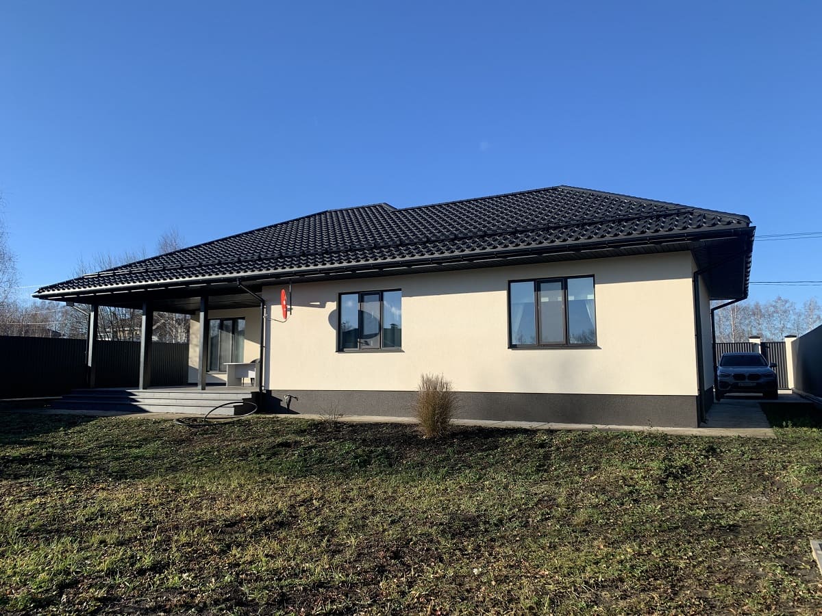 Полезная площадь дома — 138 м2, площадь террасы — 29 м2, высота потолков — 3 м и 2,8 м
